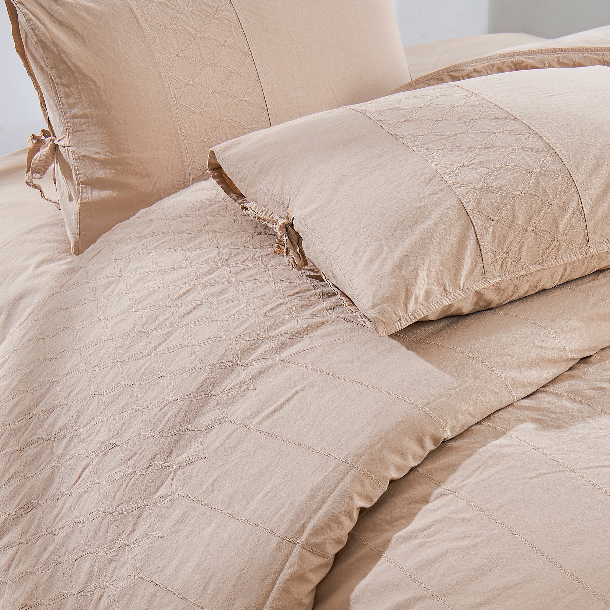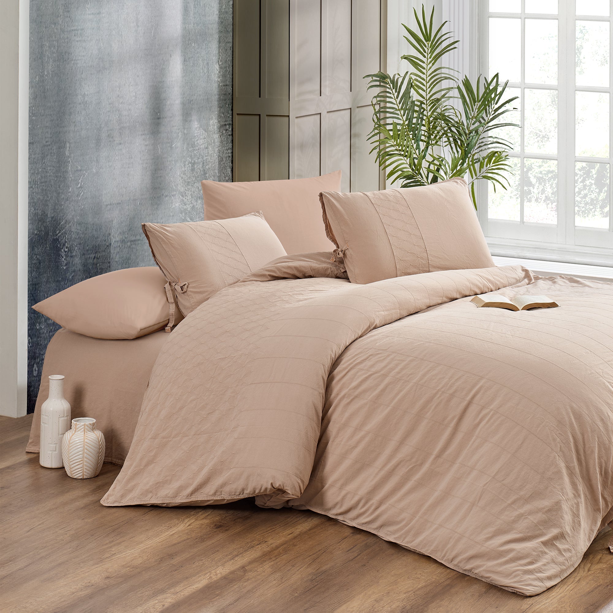 Carmine %100 Pamuk Nakışlı Çift Kişilik Nevresim Takımı Pudra
