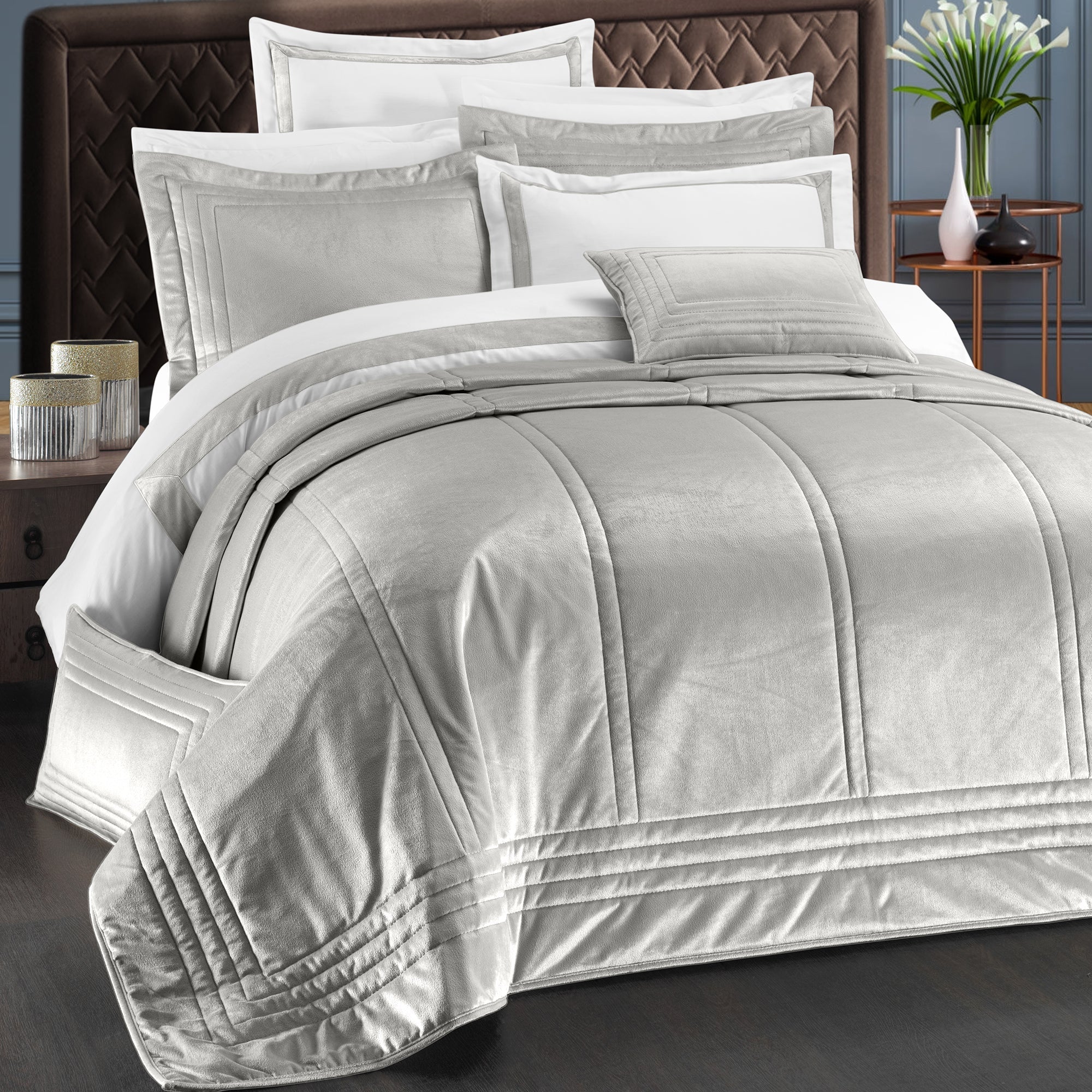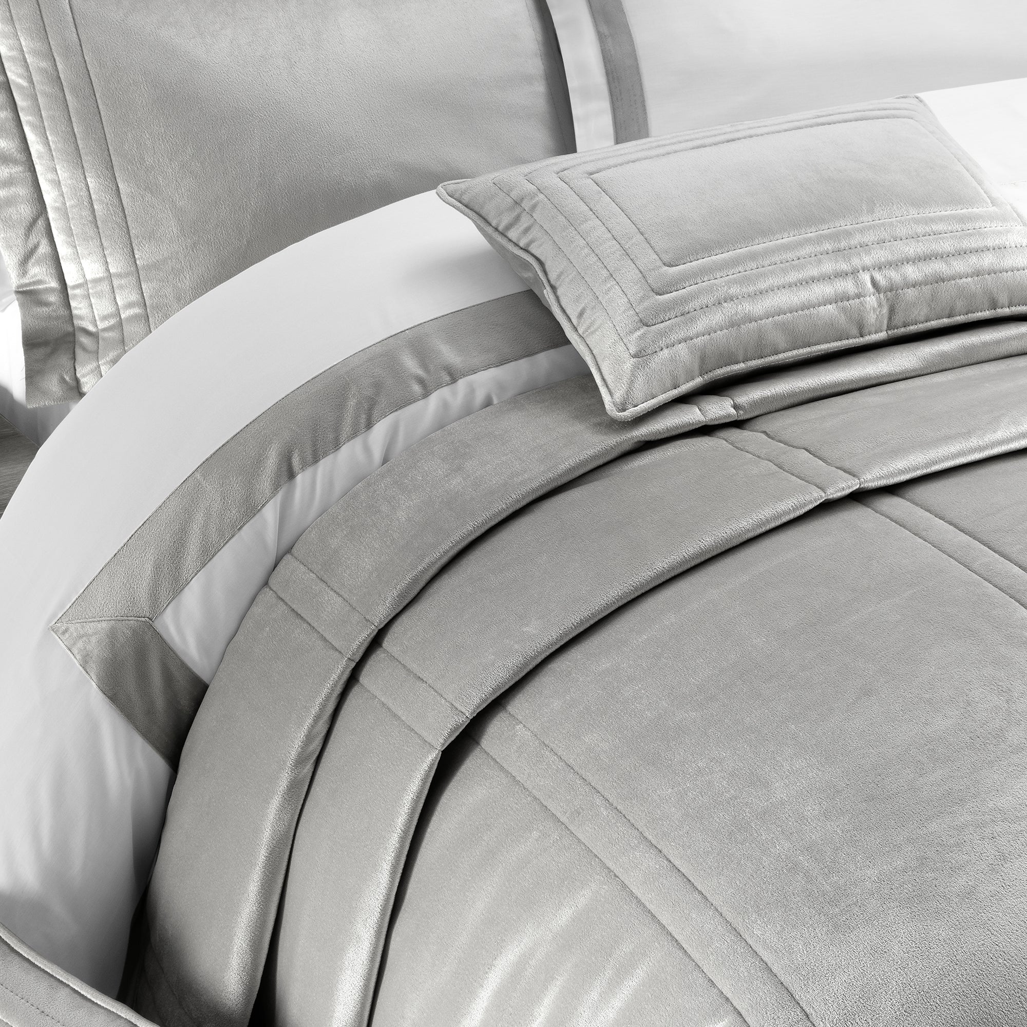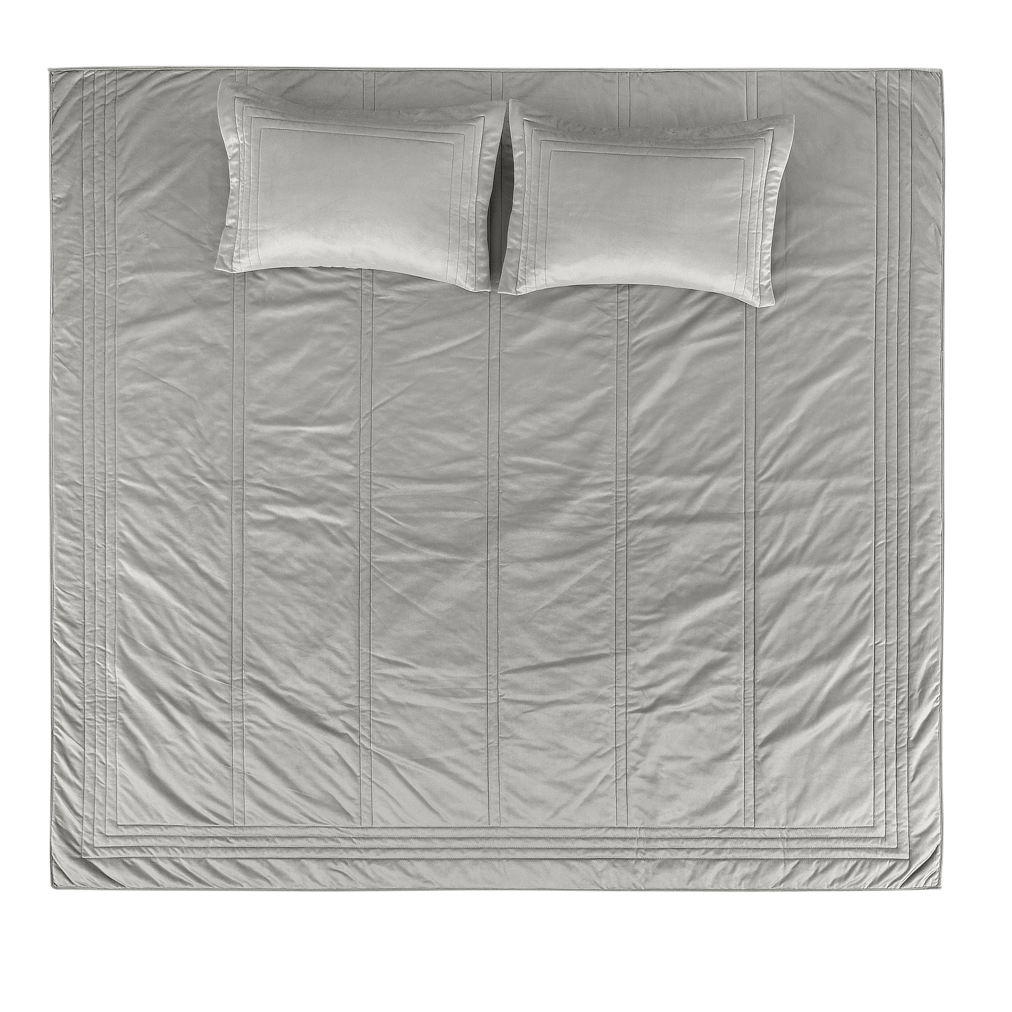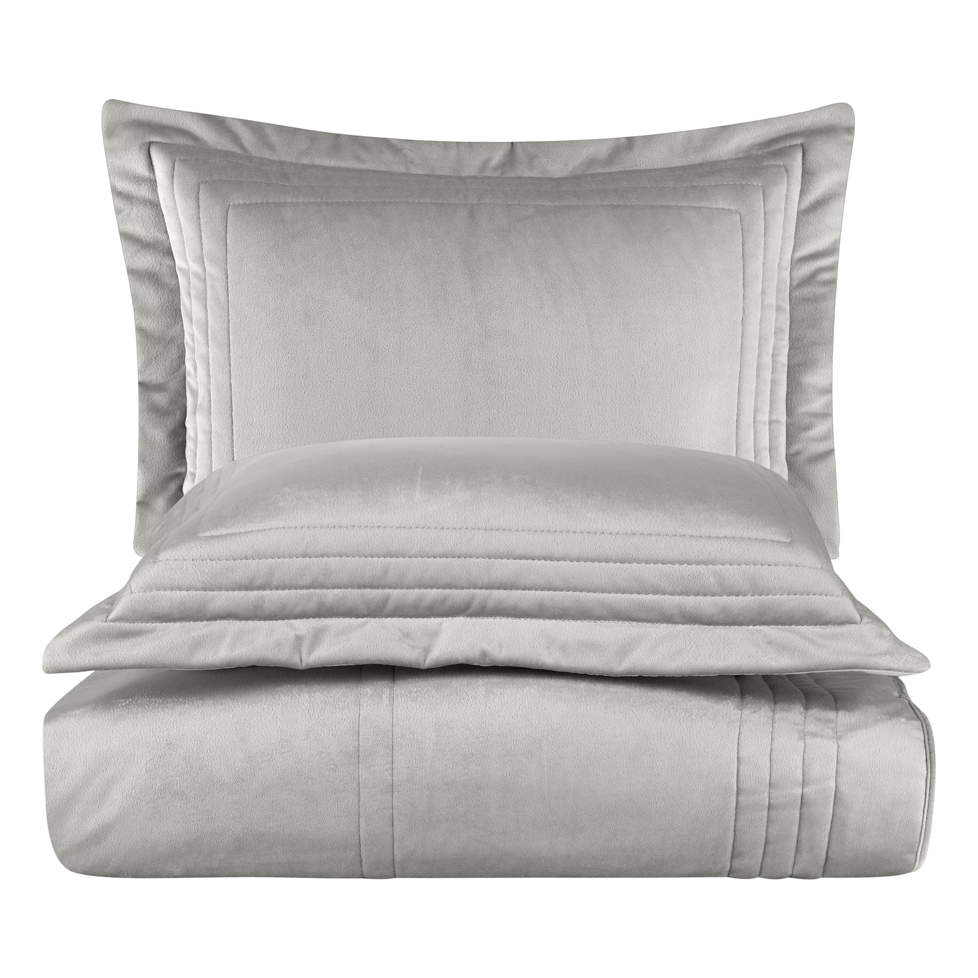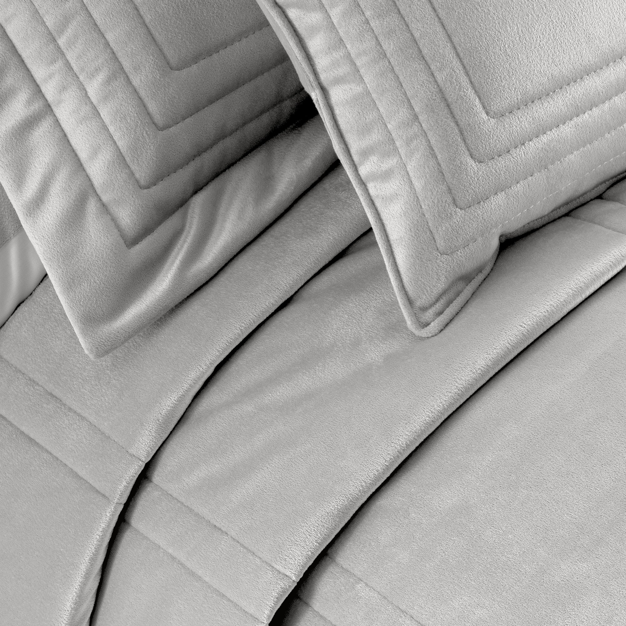 İlya Kadife Çift Kişilik Yatak Örtüsü Takımı Gri
