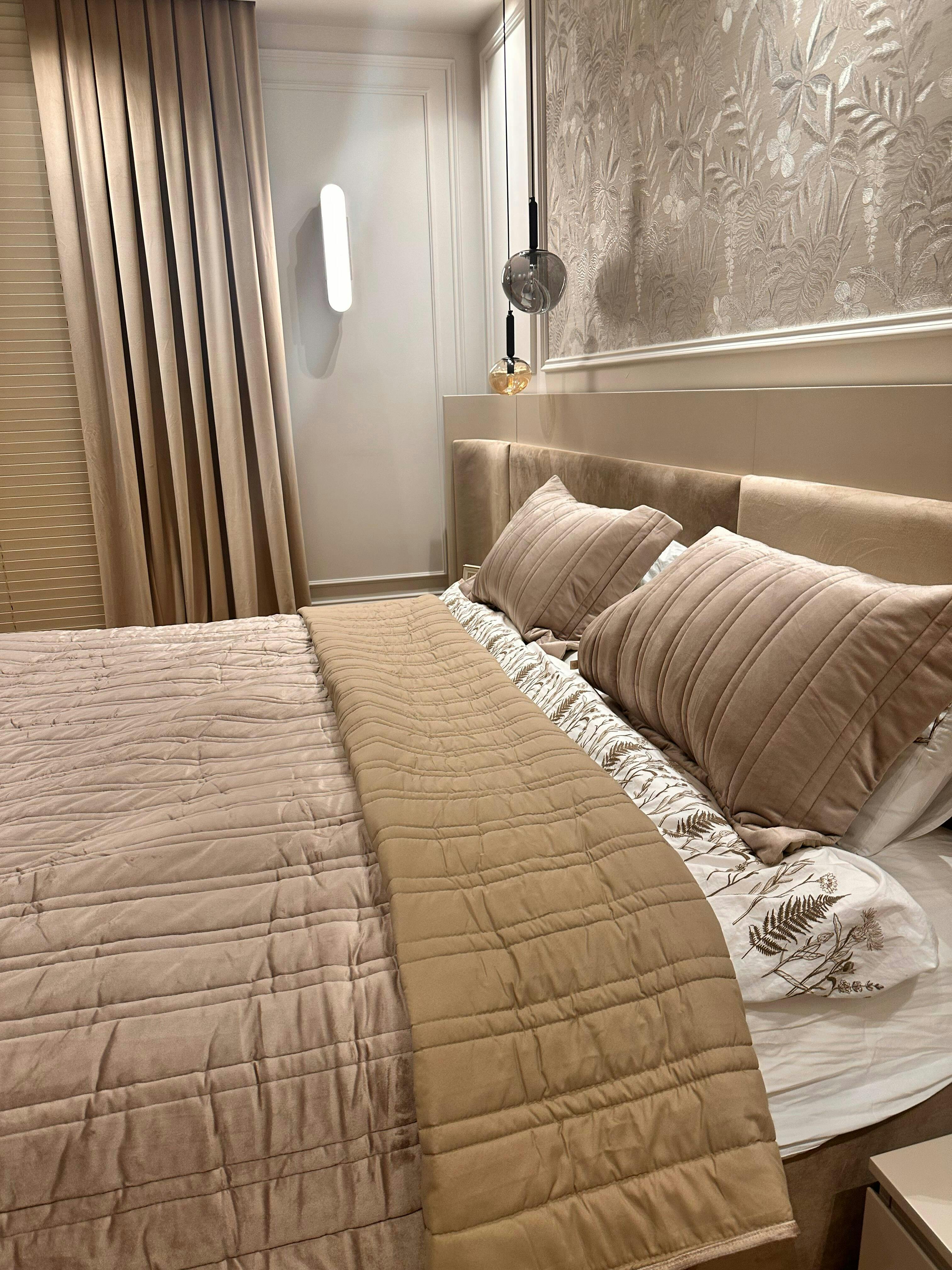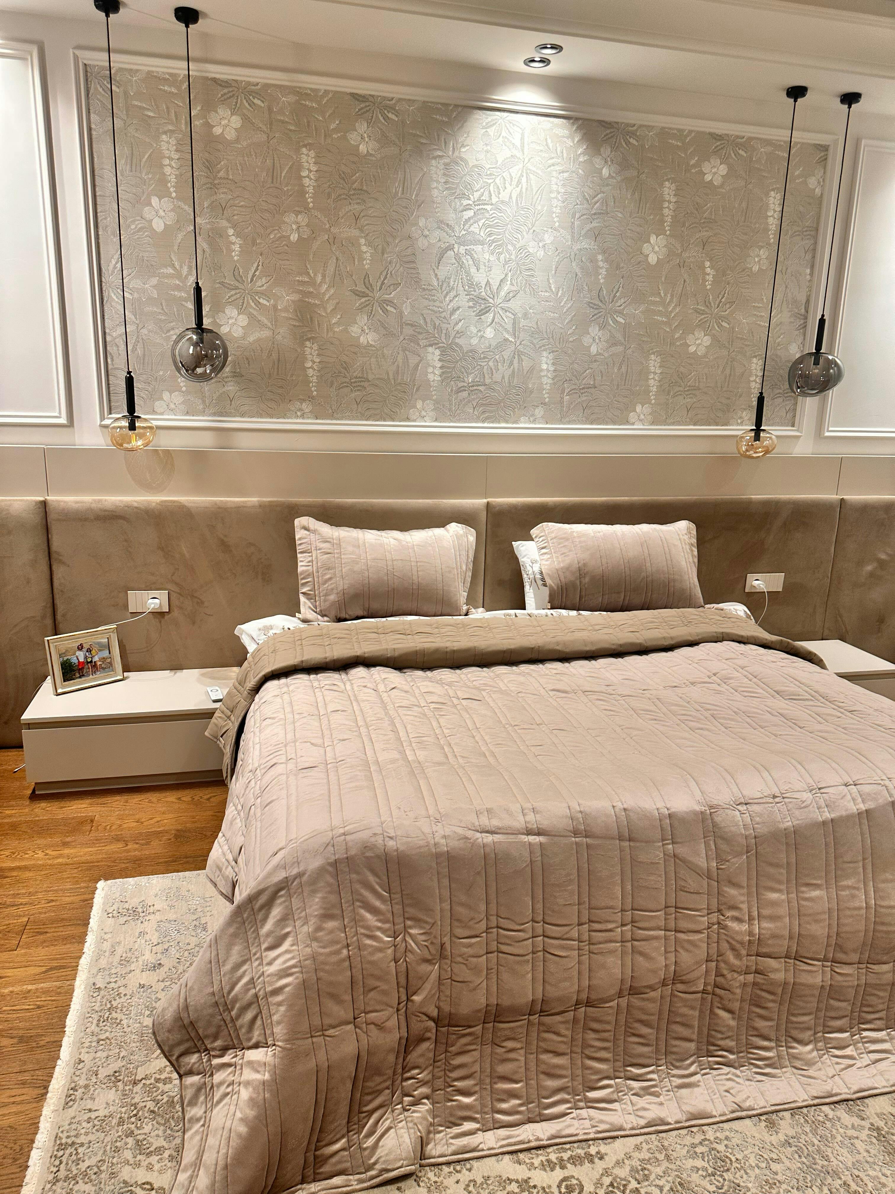 Romeo Kadife Çift Kişilik Yatak Örtüsü Takımı Bej