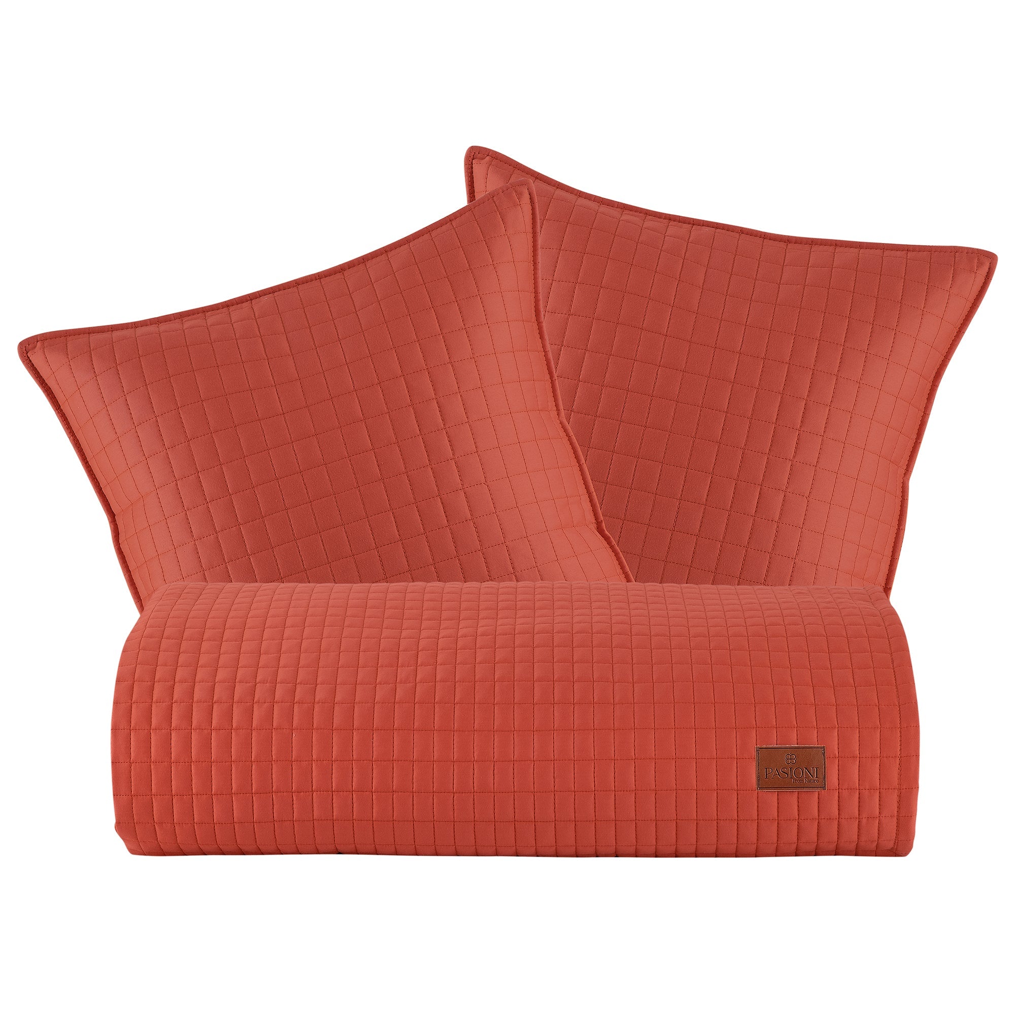 PASIONI - %100 Pamuk Saten - Elegante - Mercan Çift Kişilik Yatak Runner Seti