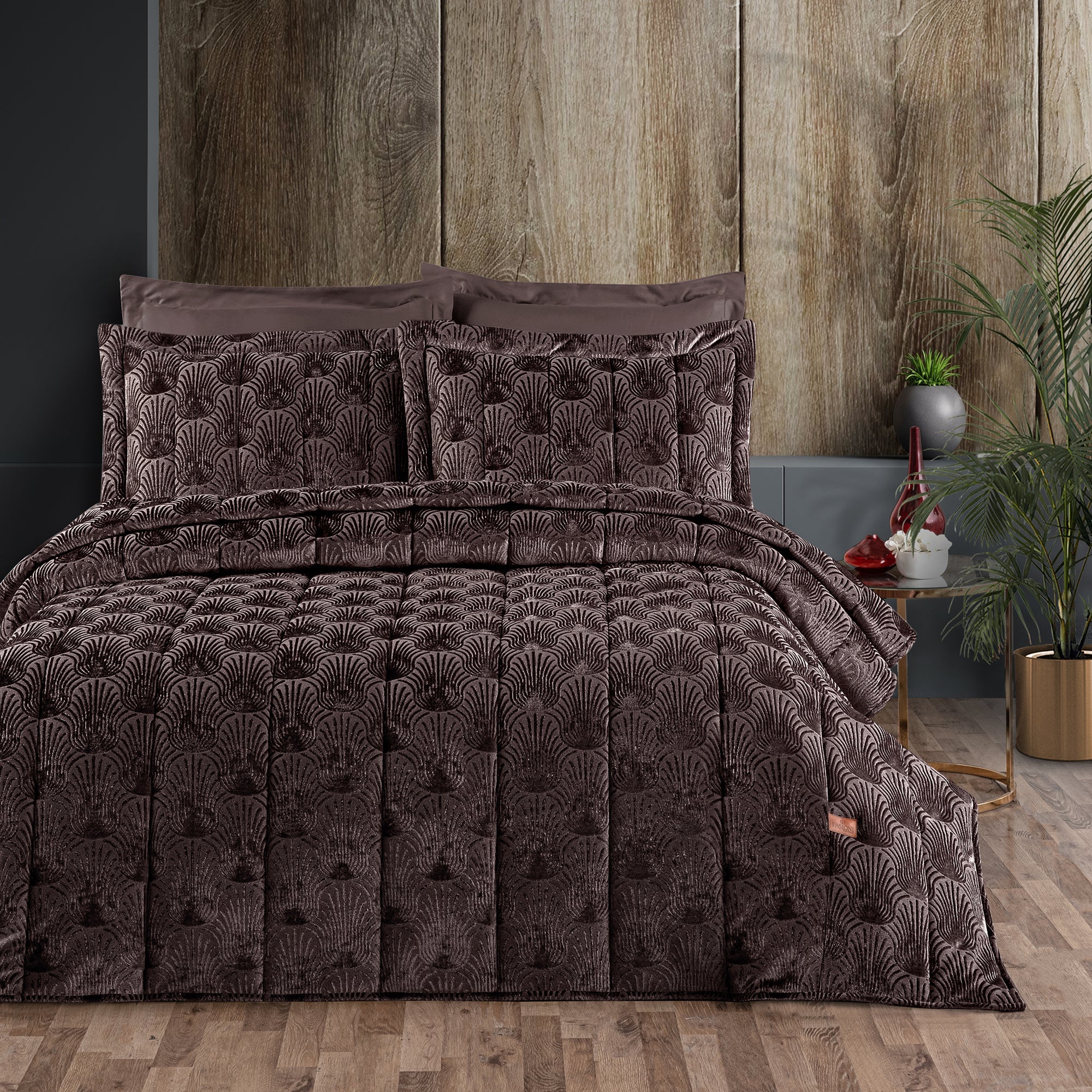 Lucianna Jakar Kadife Mürdüm Çift Kişilik Yatak Örtüsü Takımı Mürdüm