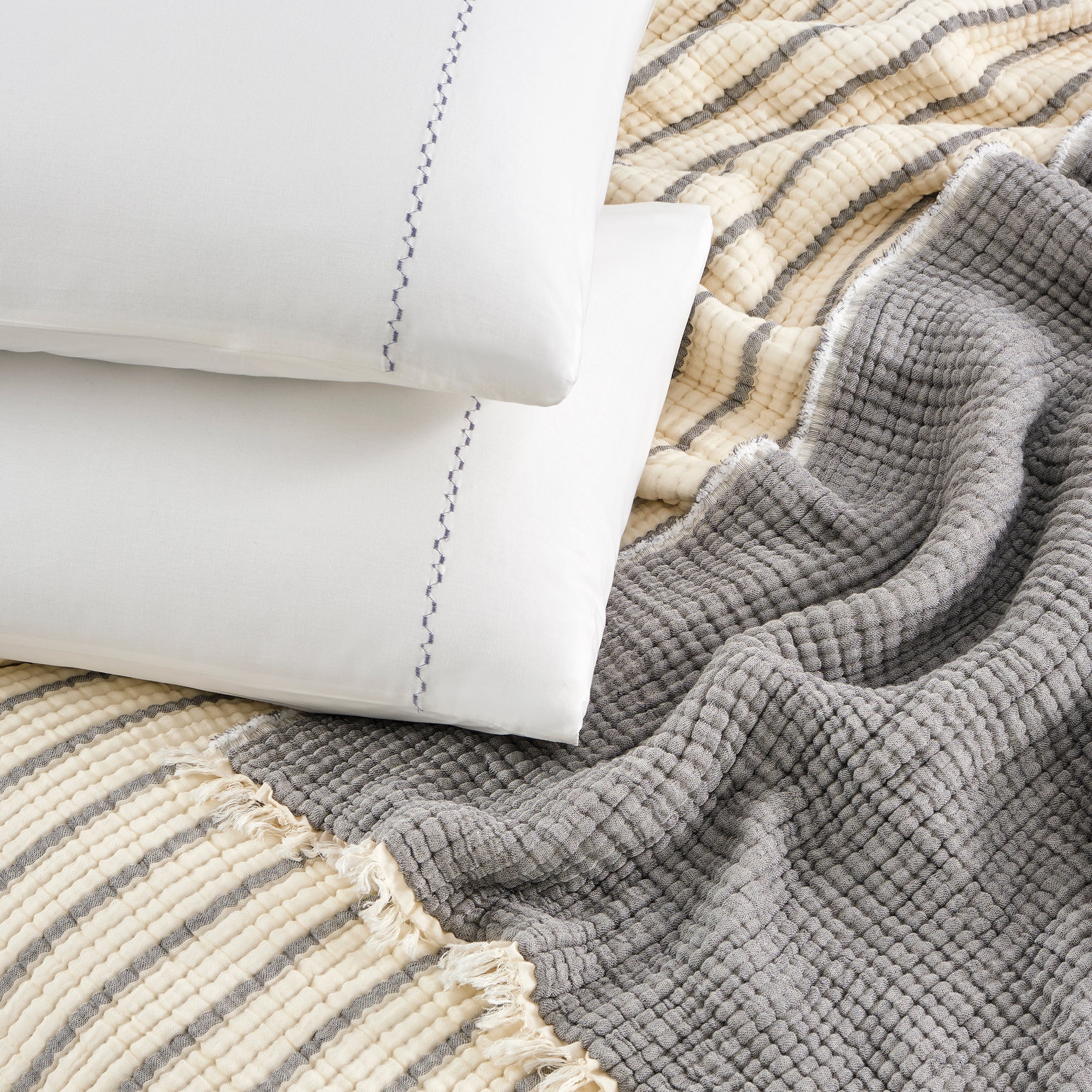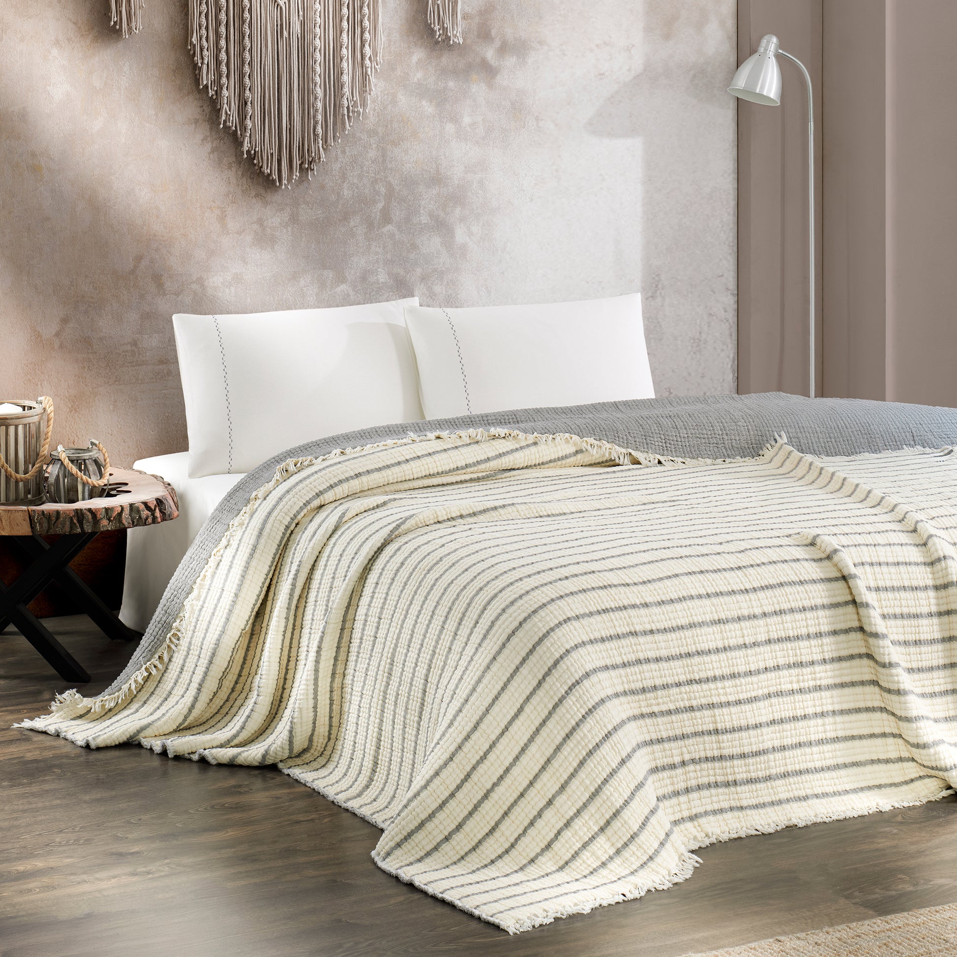 mükemmel uyum sağlar; yatak örtüsü, pike ya da hafif battaniye olarak rahatlıkla kullanılabilir.