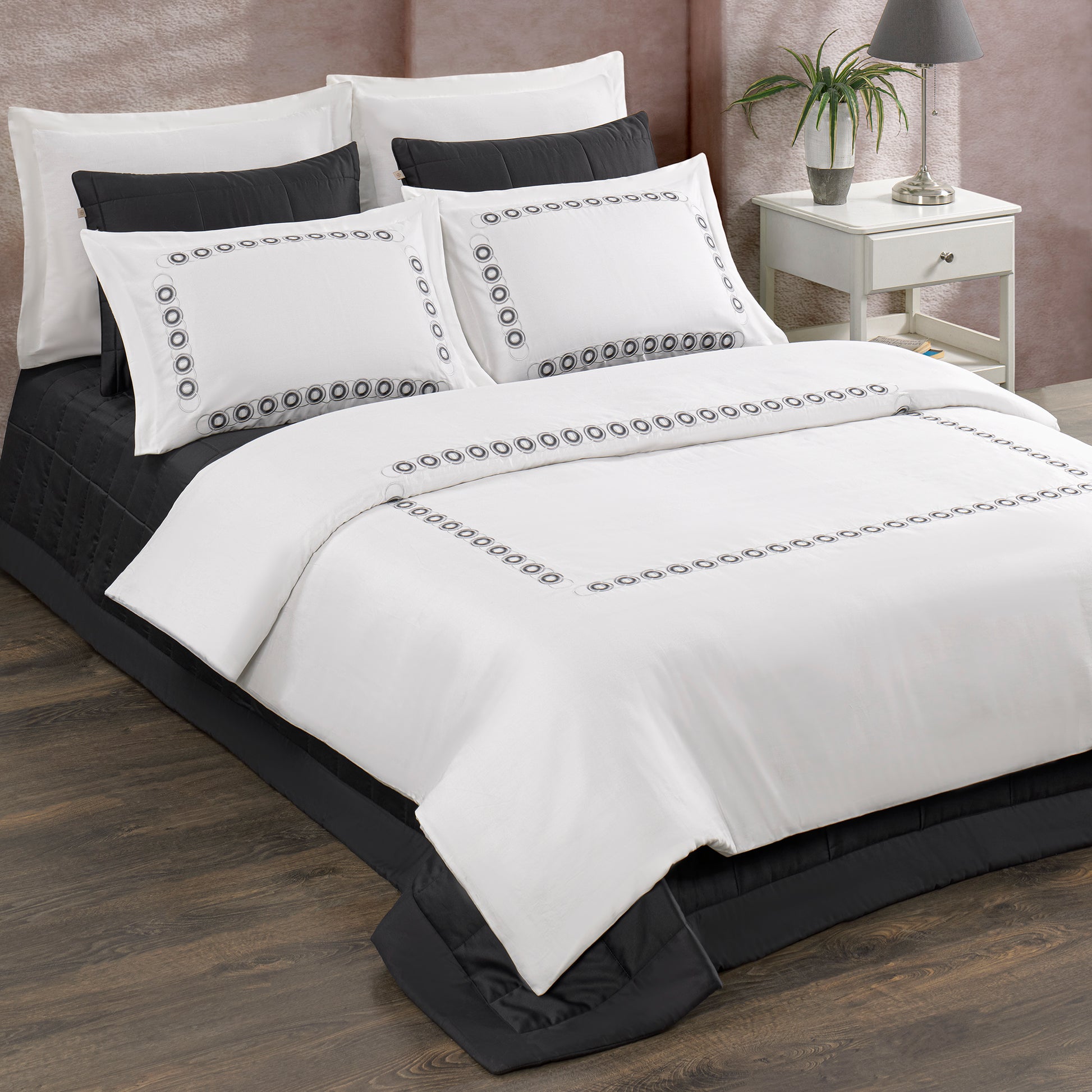 Pasioni Alda Nakışlı %100 Pamuk Saten Çift Kişilik Nevresim Takımı Antrasit