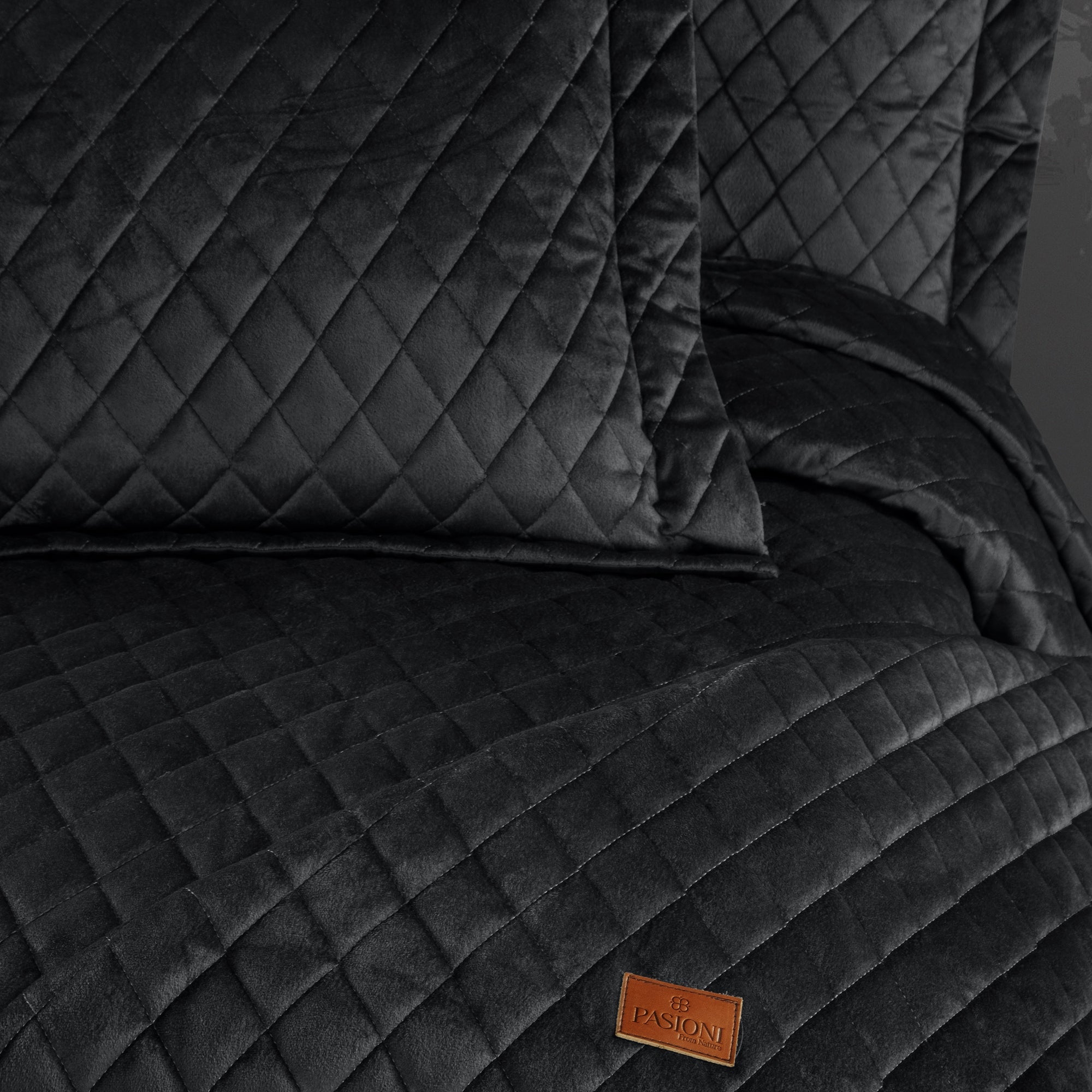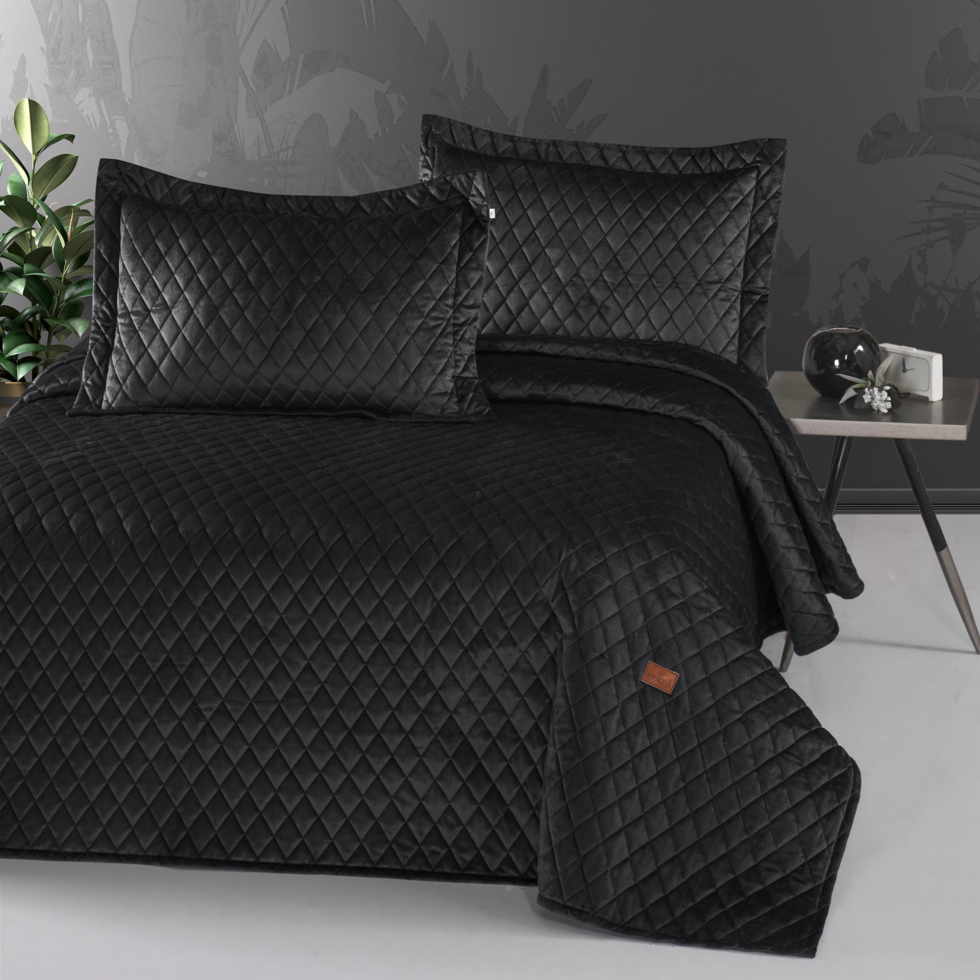 PASIONI - Arnaldo - Velvet Antrasit Çift Kişilik Yatak Örtüsü Takımı