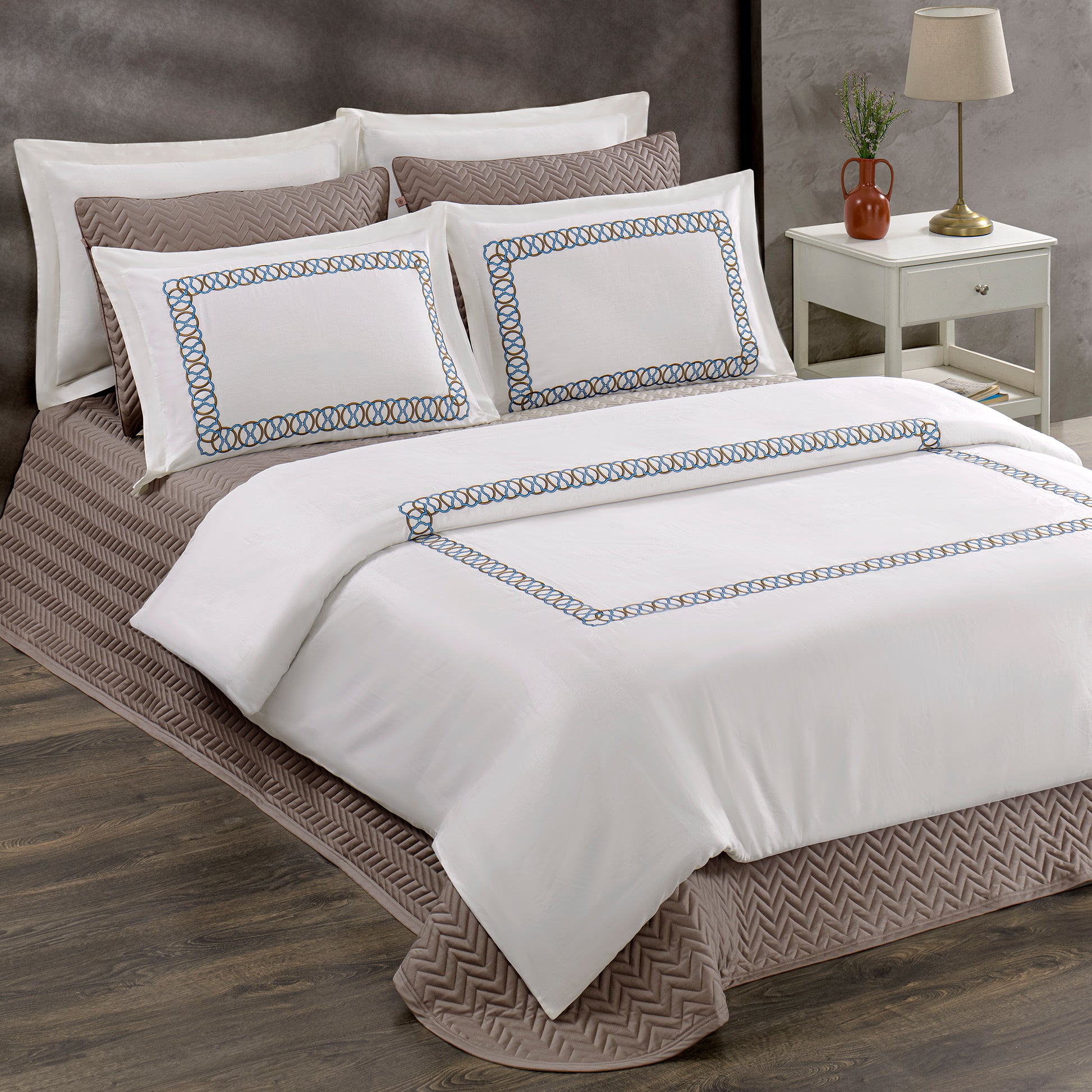 Pasioni Laura Nakışlı %100 Pamuk Saten Çift Kişilik Nevresim Takımı