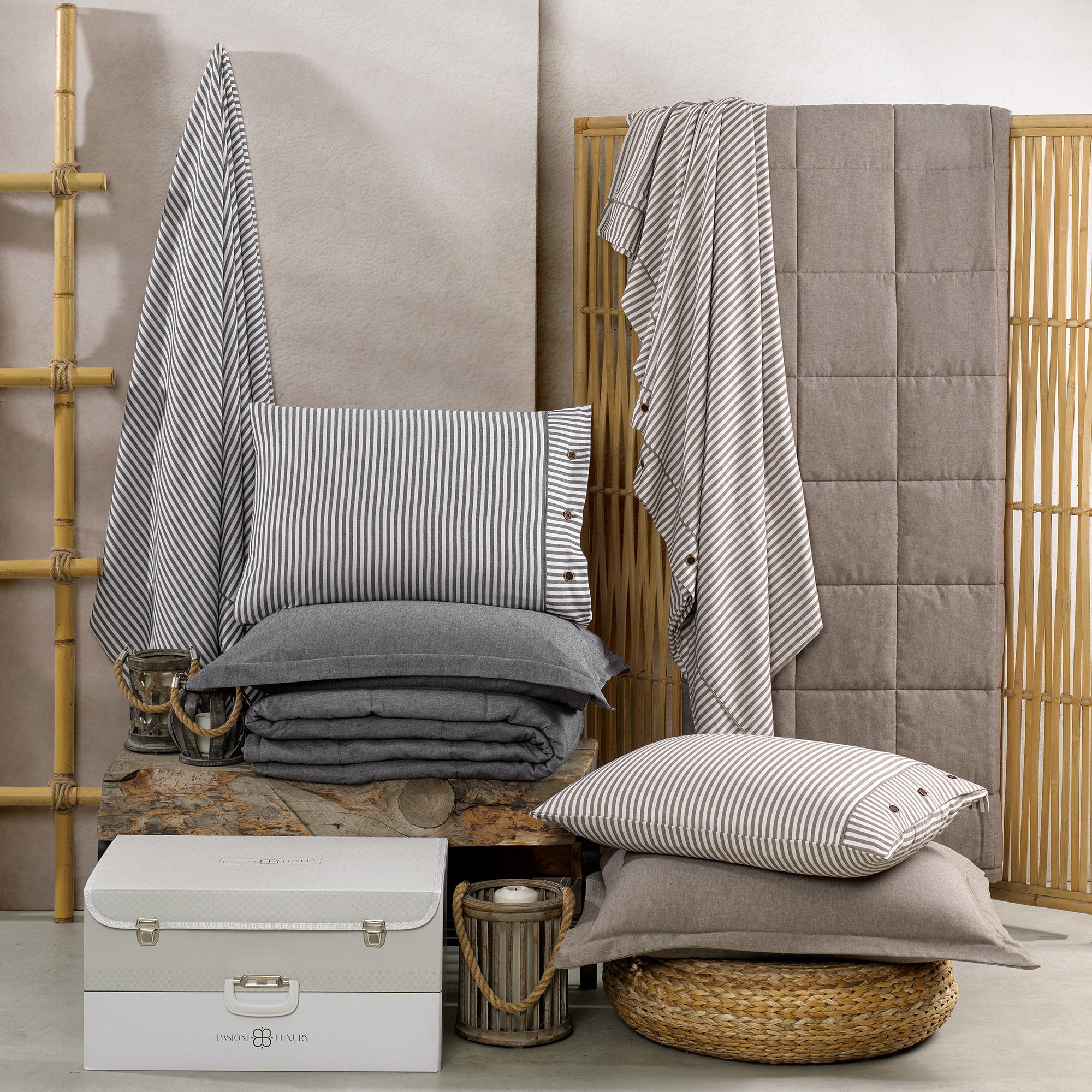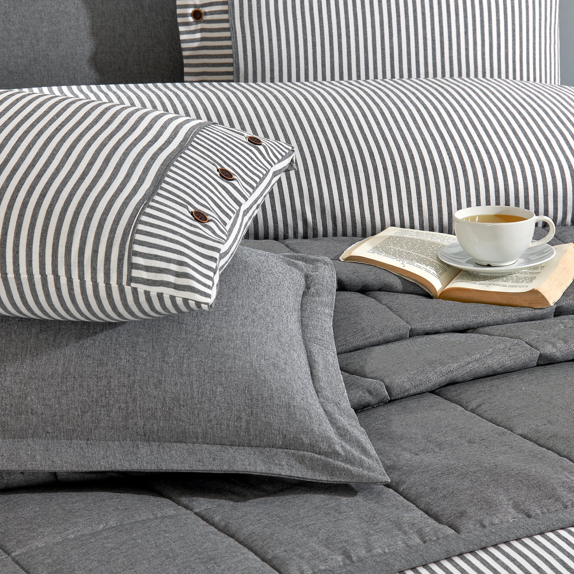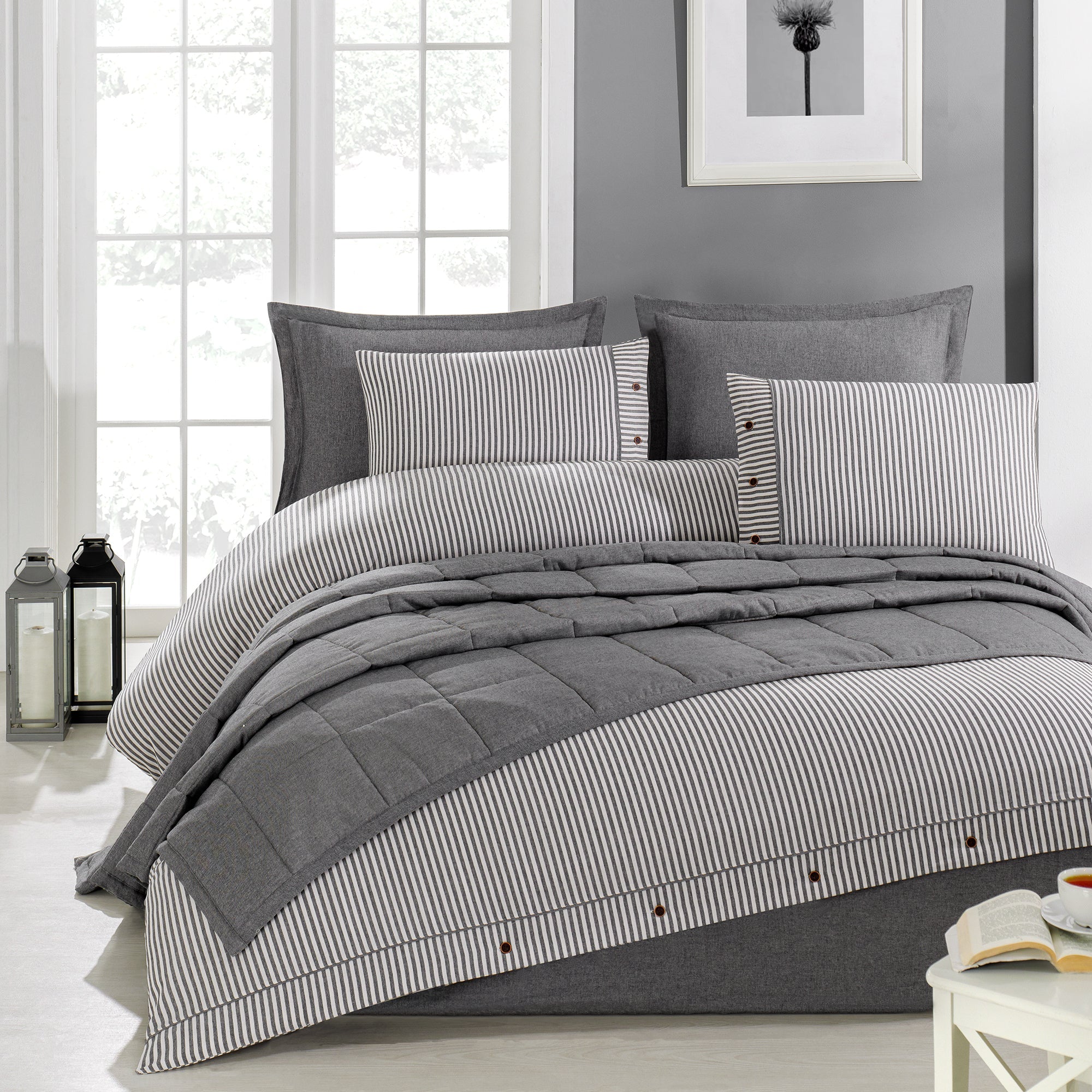 Life %100 Pamuk Çift Kişilik Nevresim Takımı ve Yatak Örtüsü (7 Parça) Antrasit