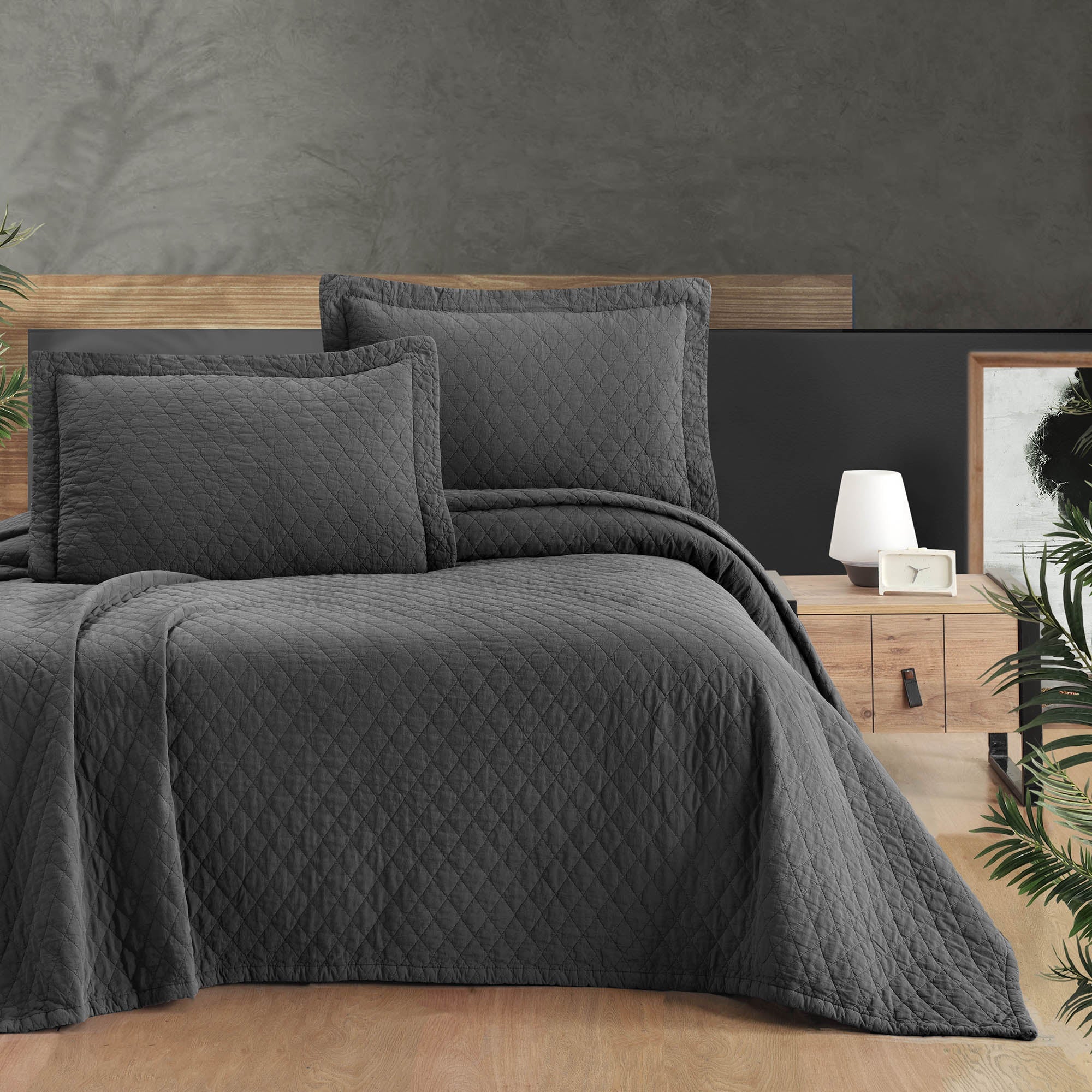 Este %100 Pamuk Parça Boyama Tek Kişilik Yatak Örtüsü Seti Antrasit