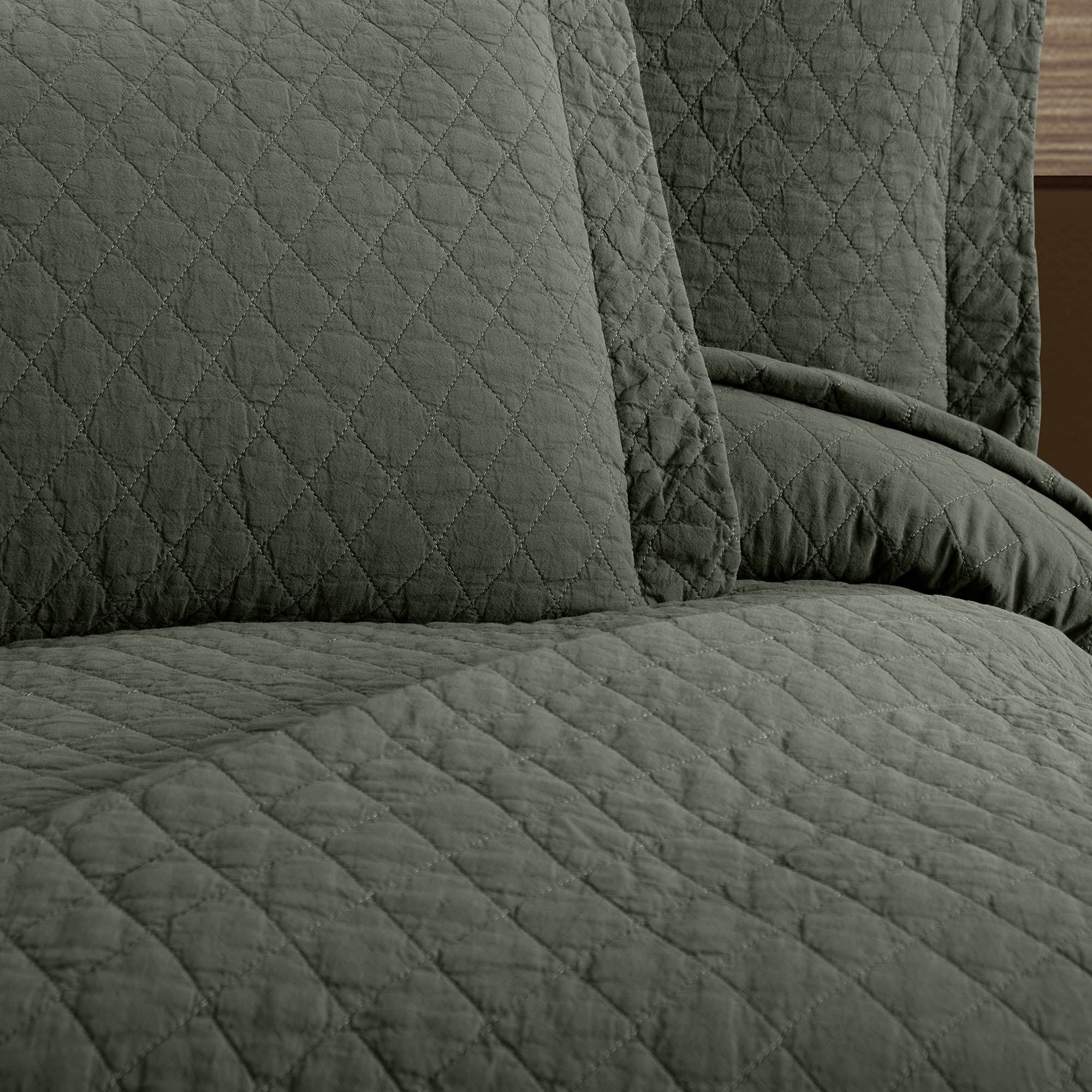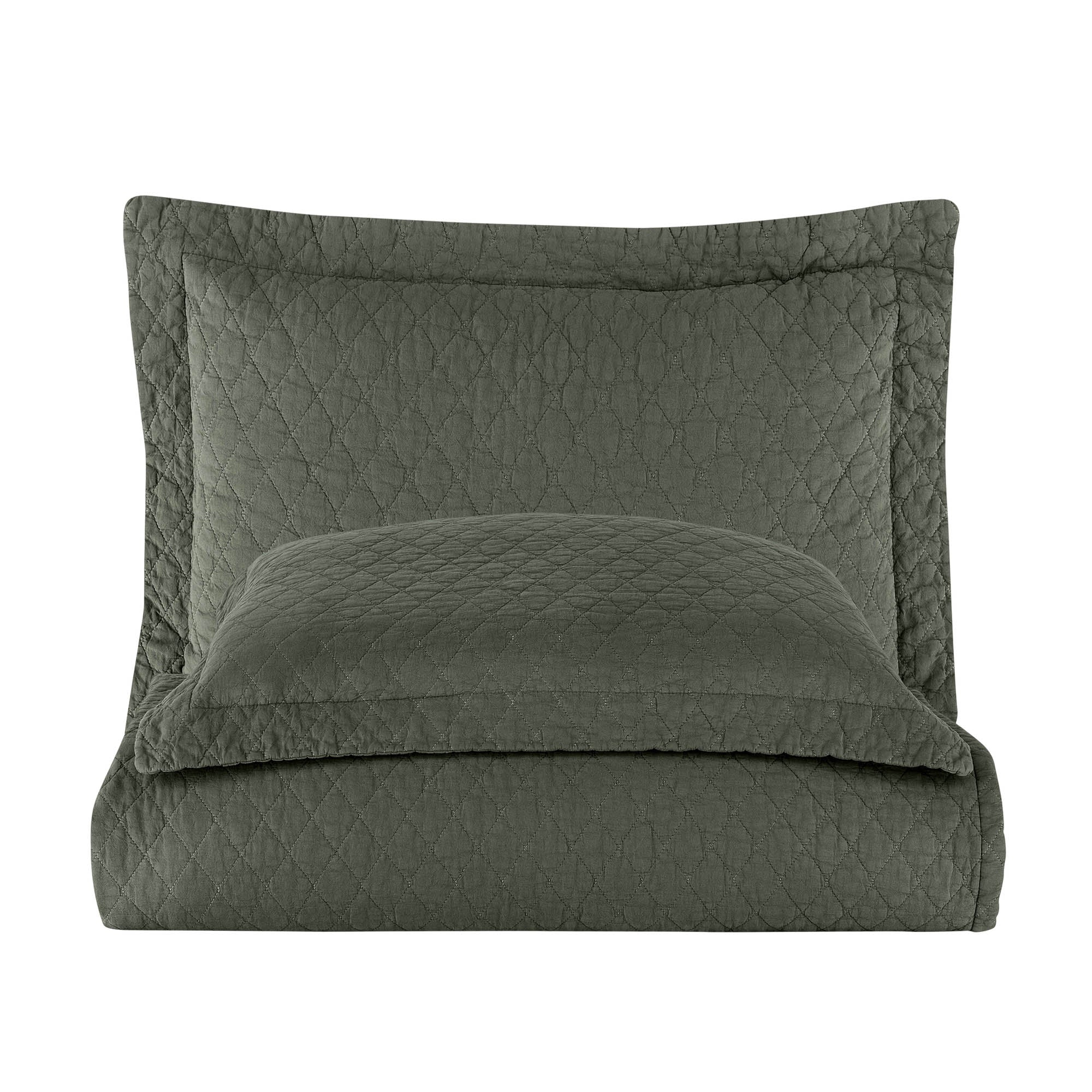 Este %100 Pamuk Parça Boyama Tek Kişilik Yatak Örtüsü Seti Haki