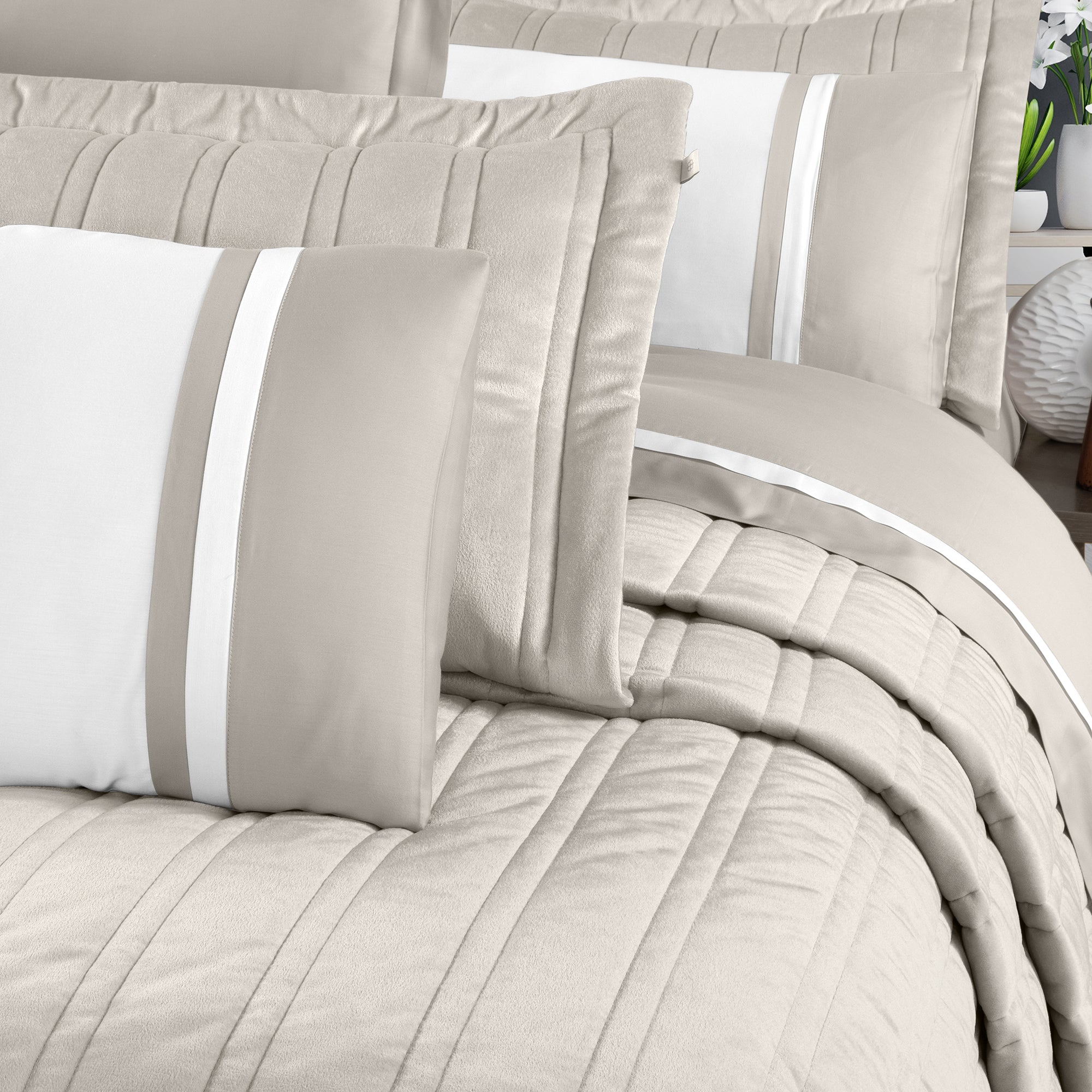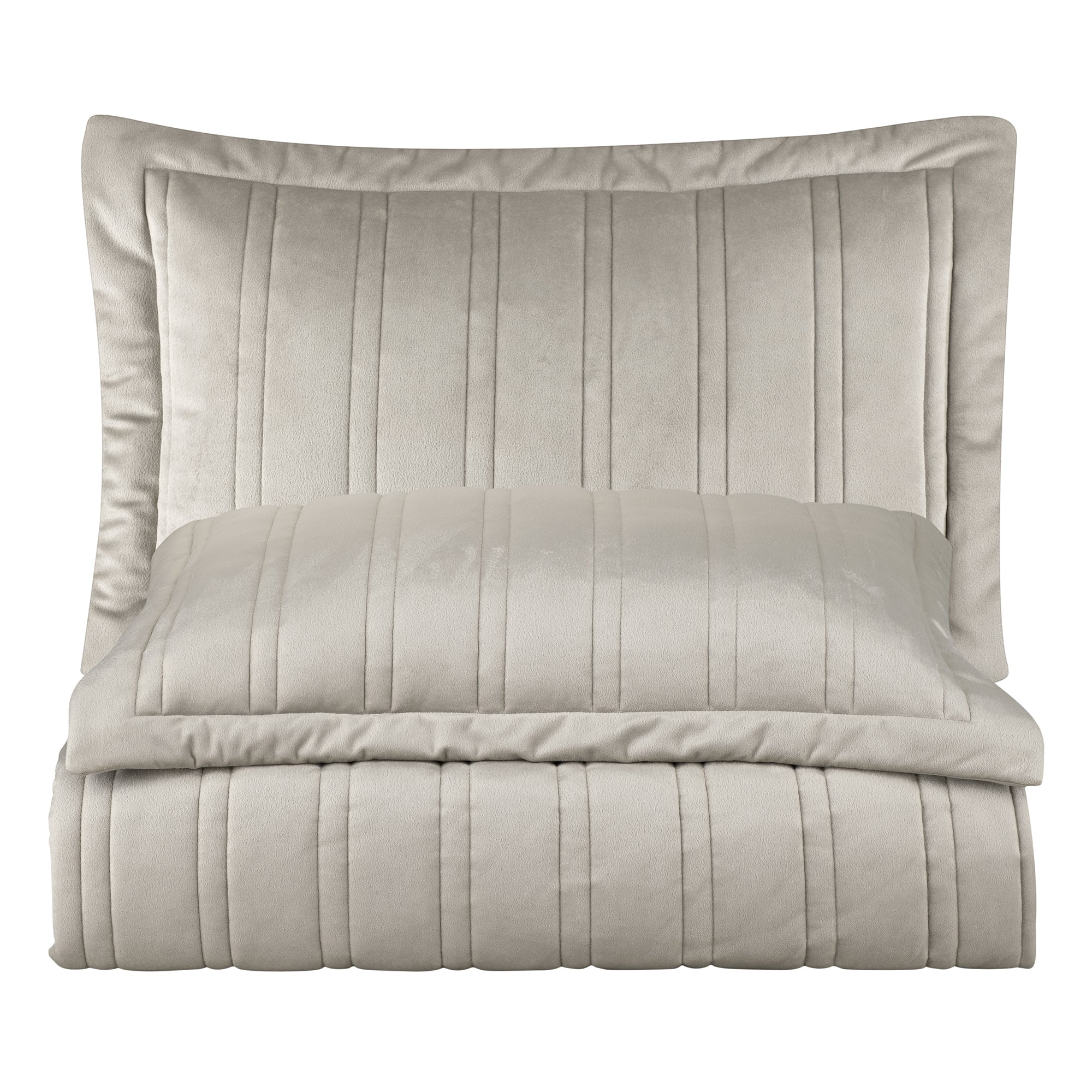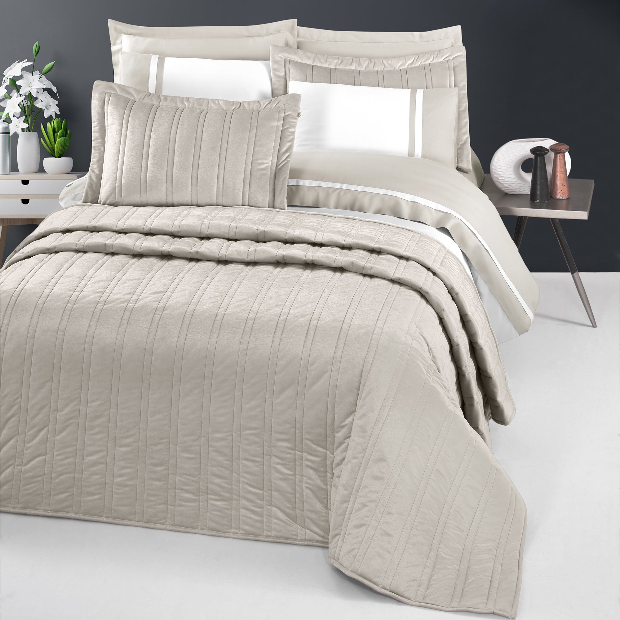 Romeo Kadife Çift Kişilik Yatak Örtüsü Takımı Bej