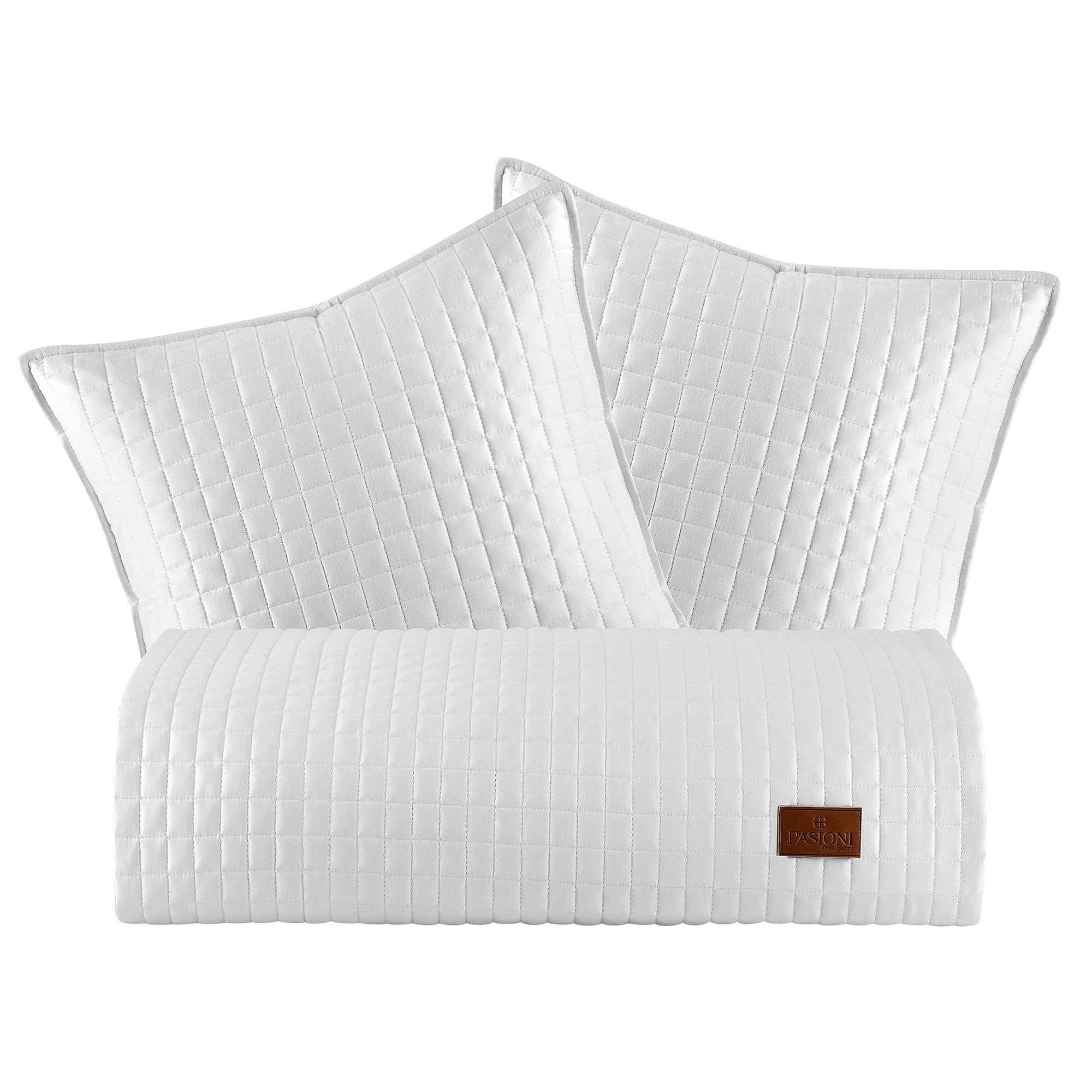PASIONI - %100 Pamuk Saten - Elegante - Beyaz Çift Kişilik Yatak Runner Seti
