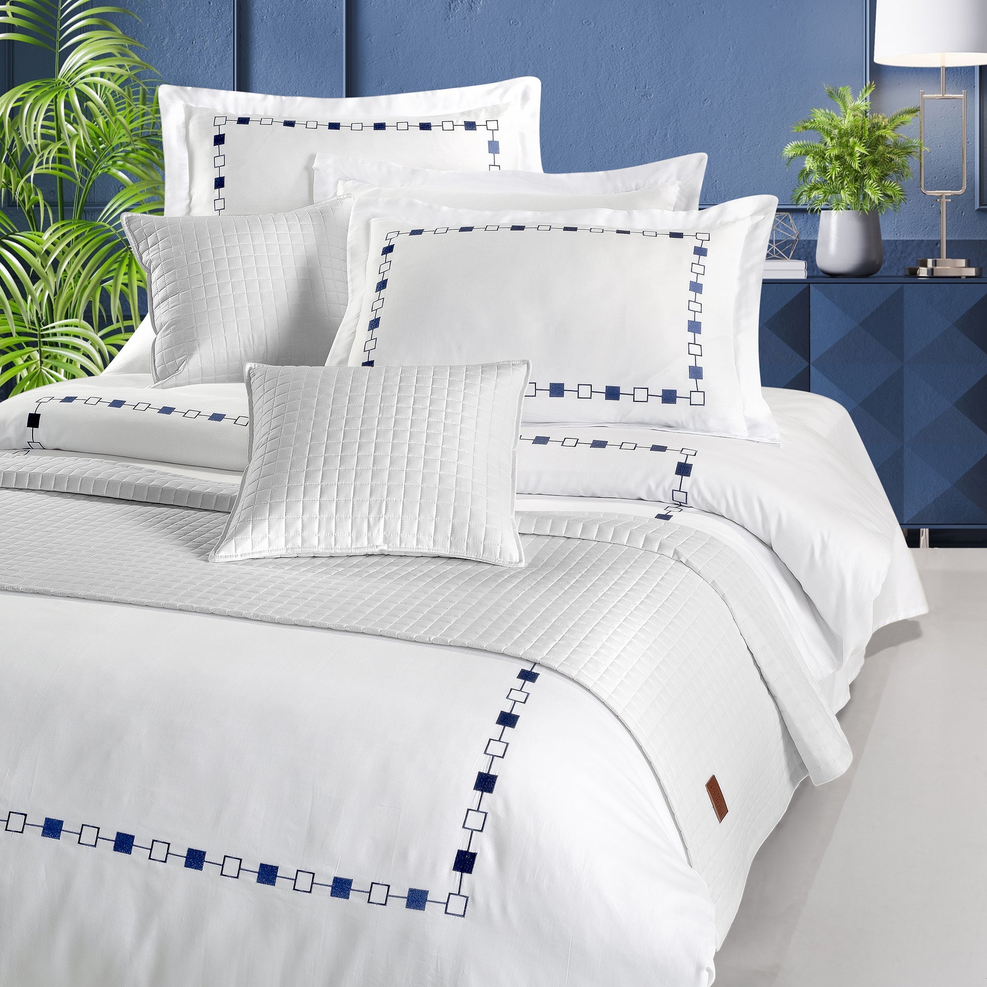 Zamana meydan okuyan 2,5x2,5 kare bir tasarıma sahip olan bu yatak runnerı, bir zarafet dokunuşu eklemek için mükemmeldir,