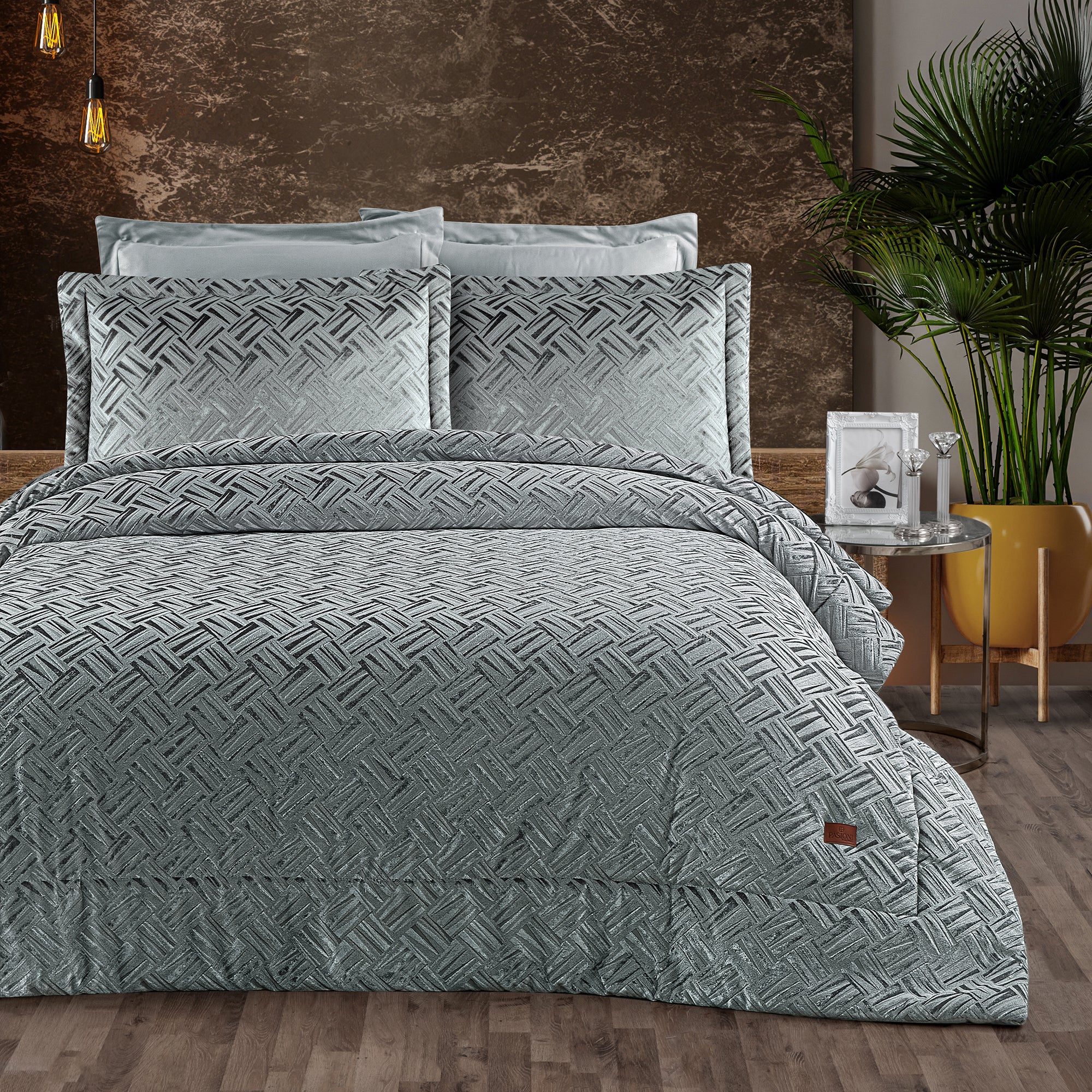 Salvatore Jakar Kadife Çift Kişilik Yatak Örtüsü Takımı Gri