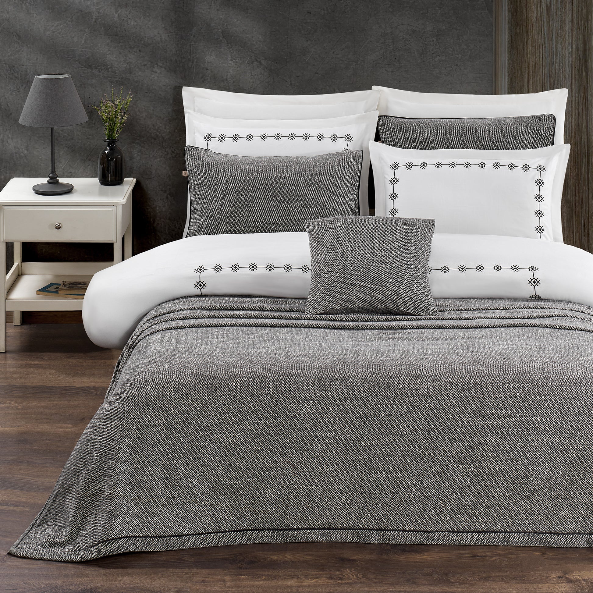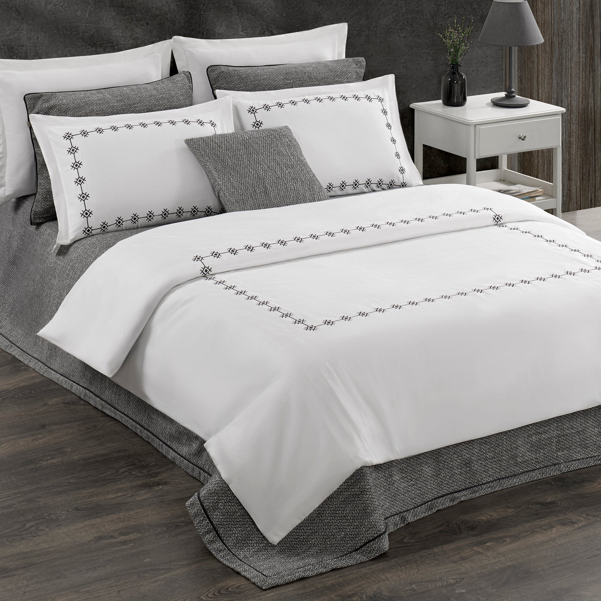 Pasioni Zoa Nakışlı %100 Pamuk Saten Çift Kişilik Nevresim Takımı Antrasit