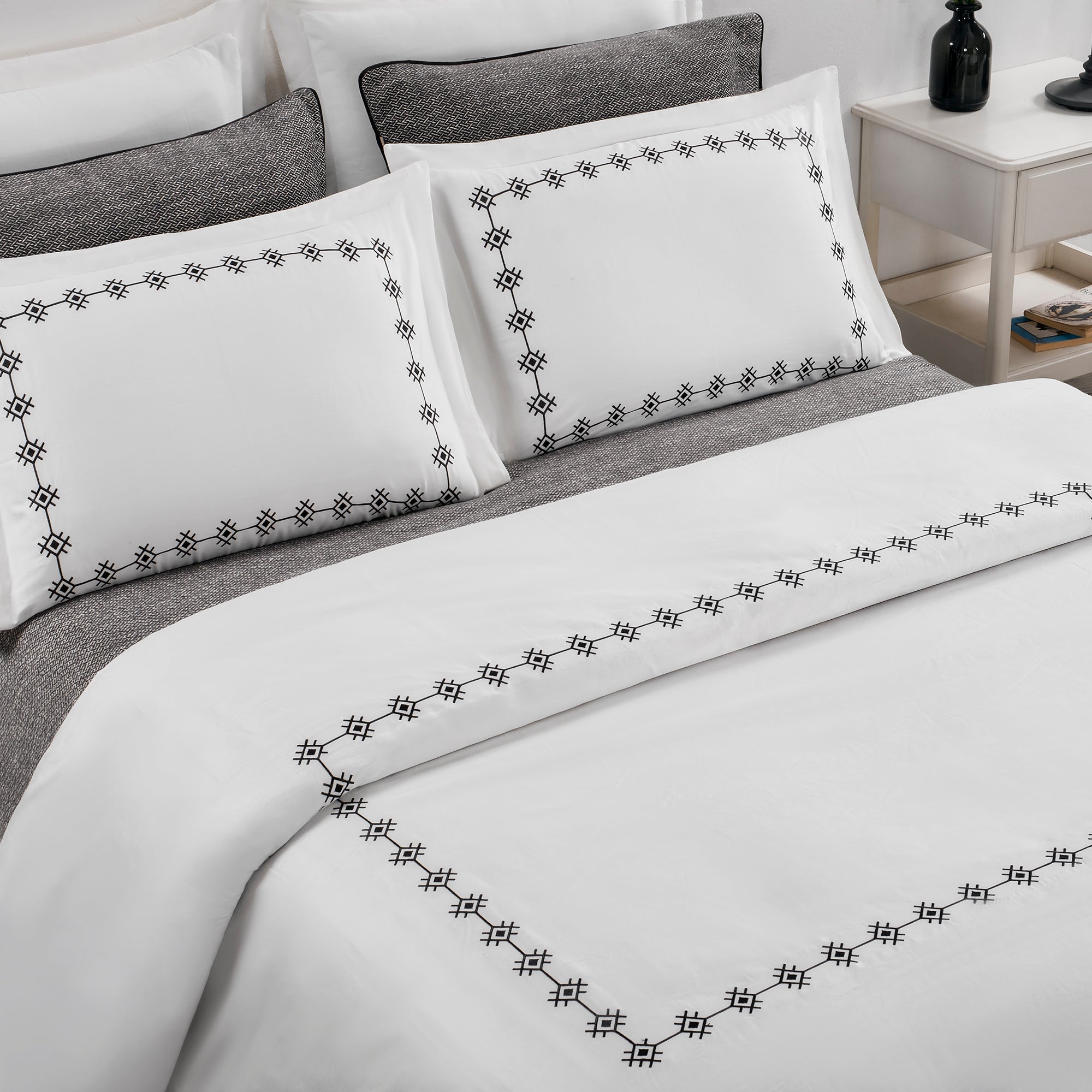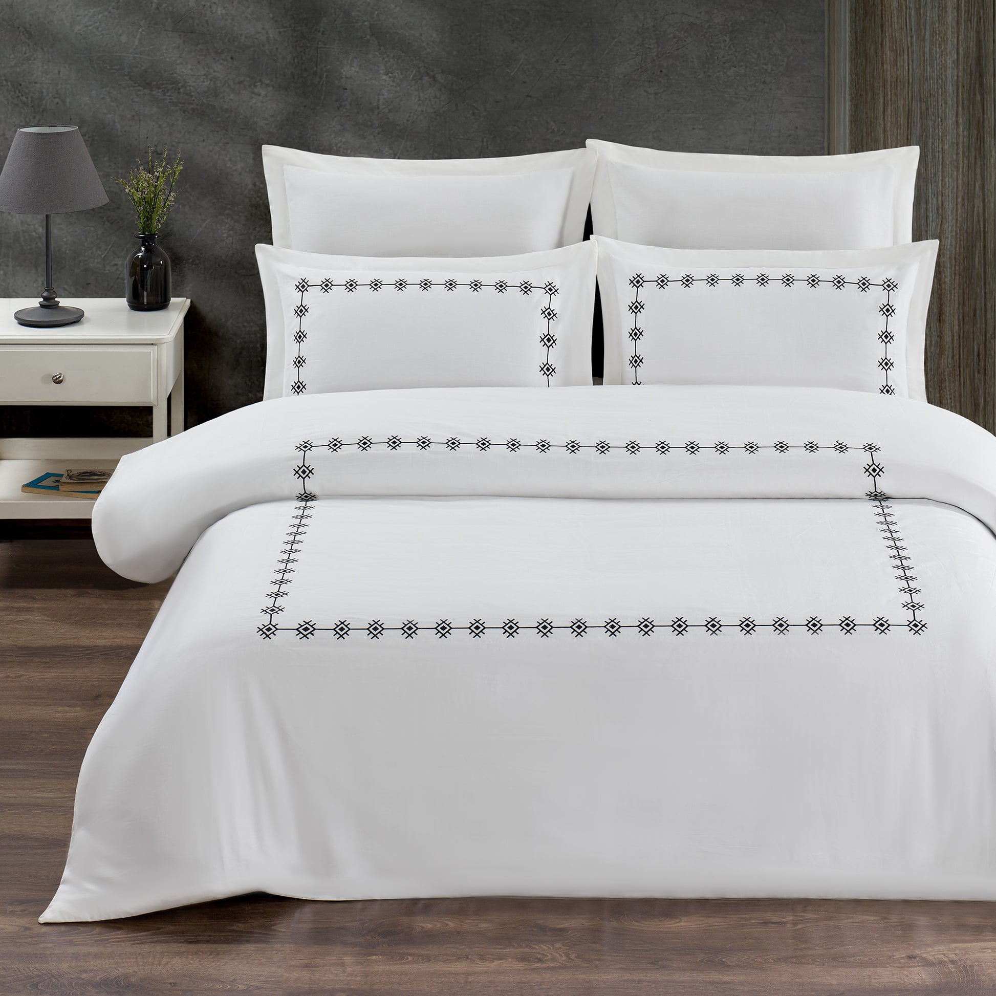 Zarafetin ve konforun birleştiği 210 TC %100 Nakışlı Pamuk Saten Nevresim Takımı, yatak odanıza sofistike bir dokunuş katıyor. Yüksek kaliteli pamuk ipliklerden üretilen saten kumaşı, yumuşacık dokusuyla teninize ipeksi bir his sunarken, özenle işlenmiş nakış detaylarıyla şıklığı bir adım öteye taşıyor.