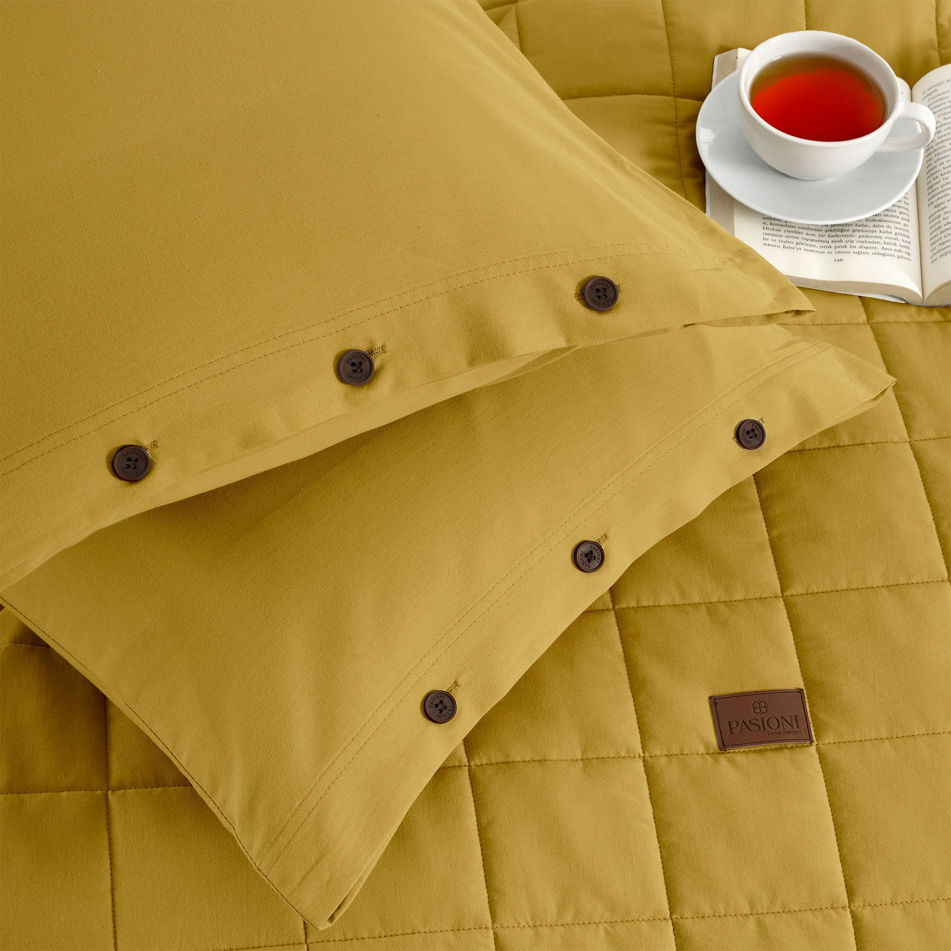 Soft %100 Pamuk Çift Kişilik Yatak Örtüsü Hardal