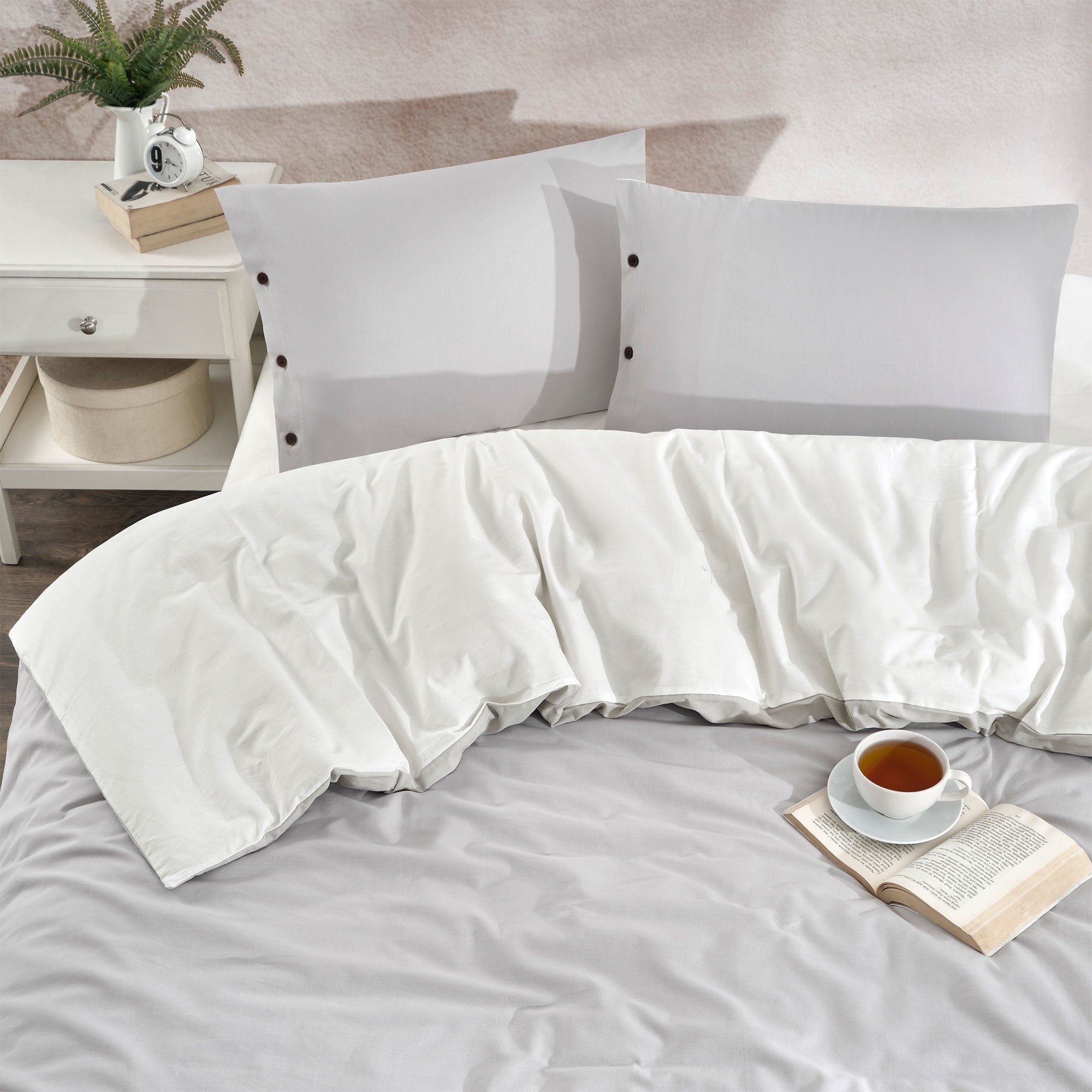 Twin Soft Tek Kişilik Double Face Nevresim Takımı Gri-Beyaz